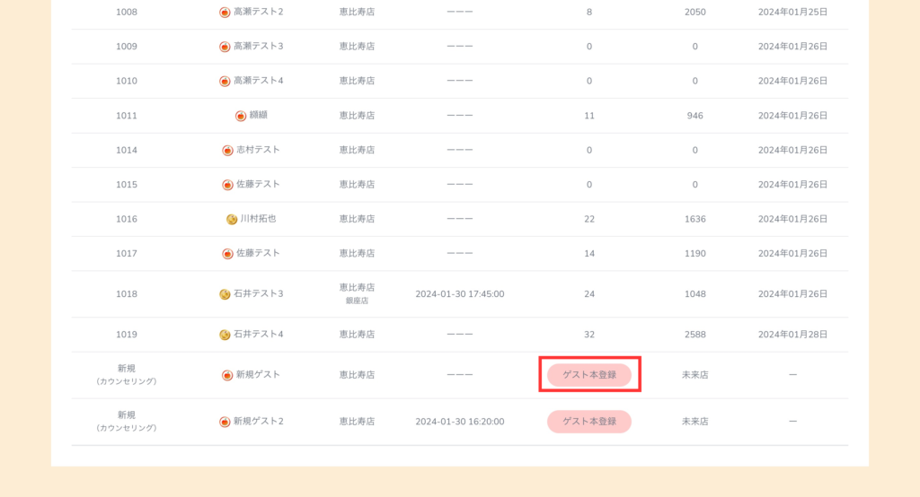 手順② アカウントを発行するゲストの行にある「ゲスト本登録」を選択してください。