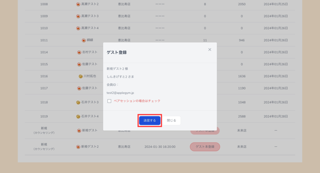 「送信する」を選択するとゲストにメールが届きます。